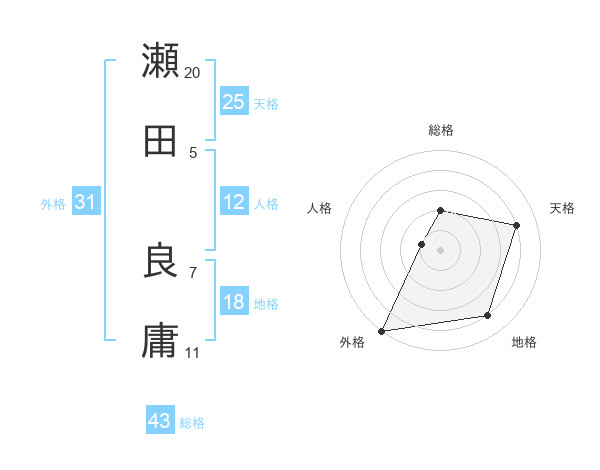 瀬田 良庸さんを姓名の画数から五運を鑑定