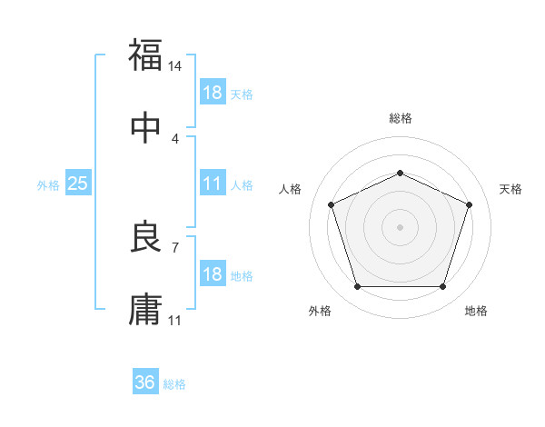 福中 良庸さんの総格は36画の3点!