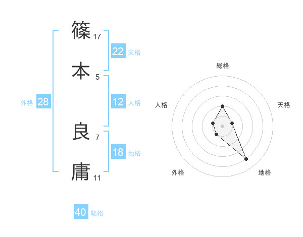 篠本 良庸さんの天格は22画の1点!