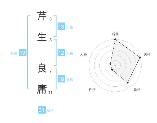芹生 良庸さんを姓名の画数から五運を鑑定