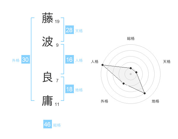 藤波 良庸さんの総格は46画の1点!