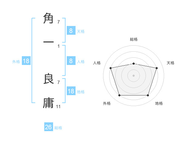角一 良庸さんの総格は26画の2点!