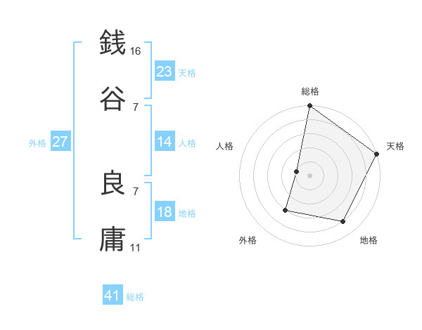 銭谷 良庸さんの総格は41画の5点!