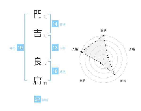 門吉 良庸さんの総格は32画の5点!