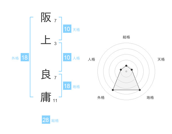 阪上 良庸さんを姓名の画数から五運を鑑定