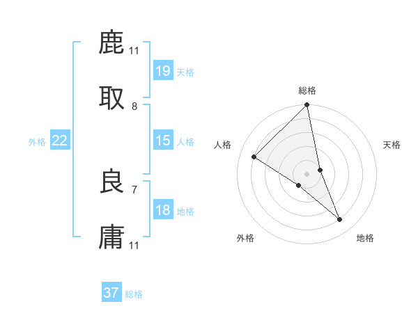 鹿取 良庸さんの総格は37画の5点!