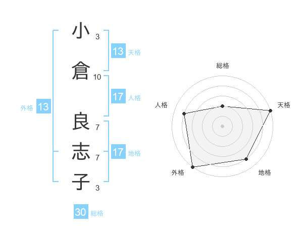 小倉 良志子さんを姓名の画数から五運を鑑定