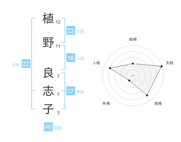 植野 良志子さんの総格は40画の2点!