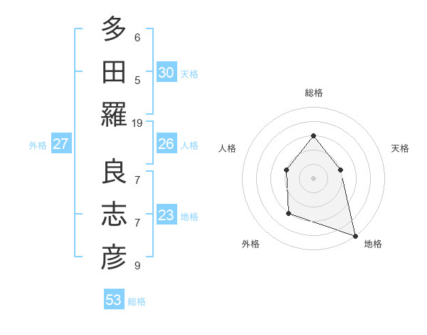 多田羅 良志彦さんを姓名の画数から五運を鑑定