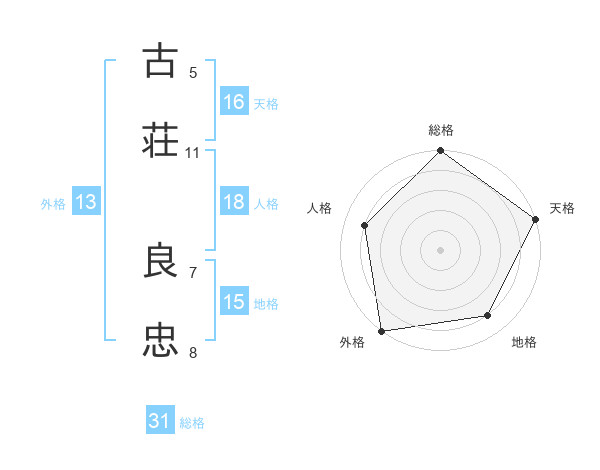 古荘 良忠さんを姓名の画数から五運を鑑定