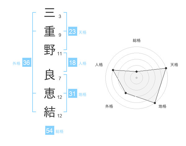 三重野 良恵結さんを姓名の画数から五運を鑑定