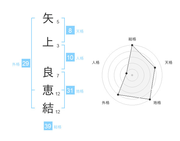 矢上 良恵結さんを姓名の画数から五運を鑑定