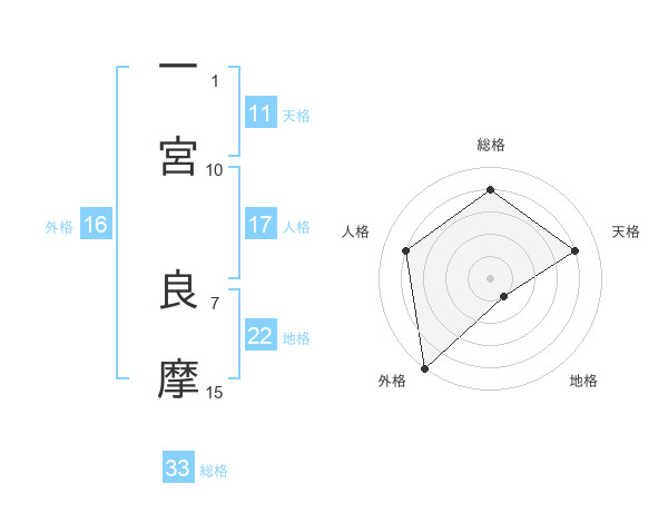 一宮 良摩さんの地格は22画の1点!