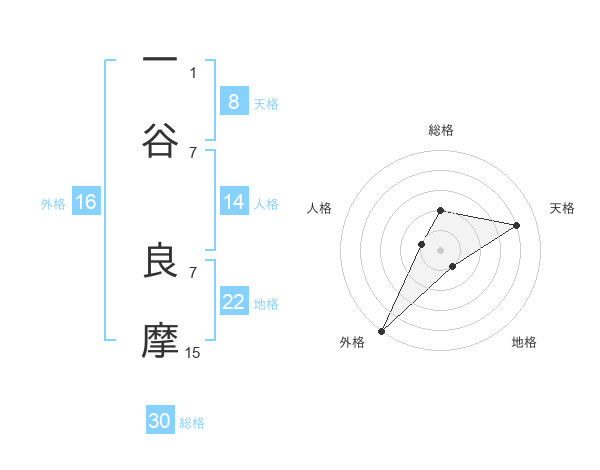 一谷 良摩さんの地格は22画の1点!