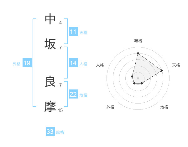 中坂 良摩さんの地格は22画の1点!
