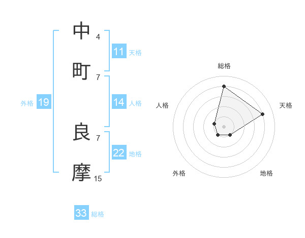 中町 良摩さんの総格は33画の4点!