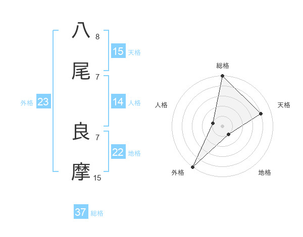 八尾 良摩さんを姓名の画数から五運を鑑定