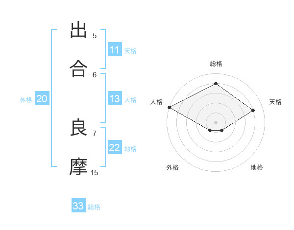 出合 良摩さんの地格は22画の1点!