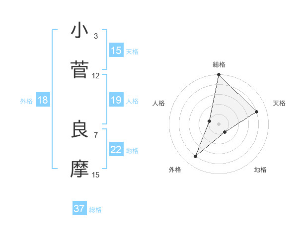 小菅 良摩さんの総格は37画の5点!