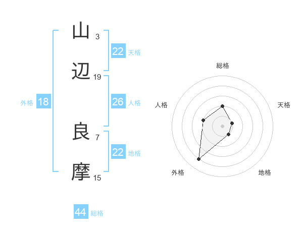 山辺 良摩さんの総格は44画の2点!
