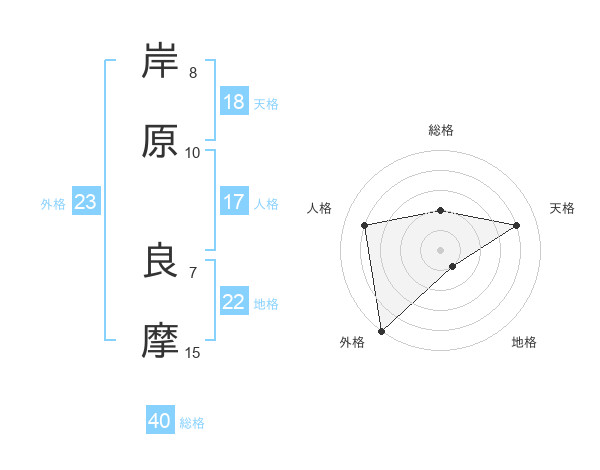 岸原 良摩さんを姓名の画数から五運を鑑定