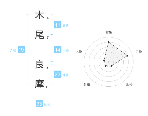 木尾 良摩さんを姓名の画数から五運を鑑定