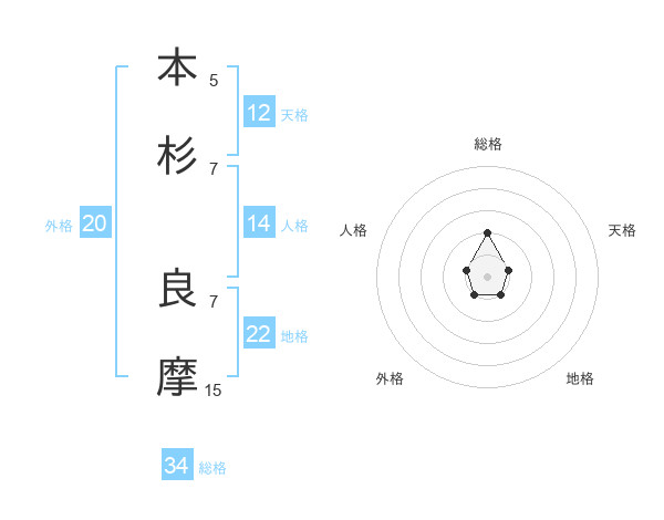 本杉 良摩さんの総格は34画の2点!