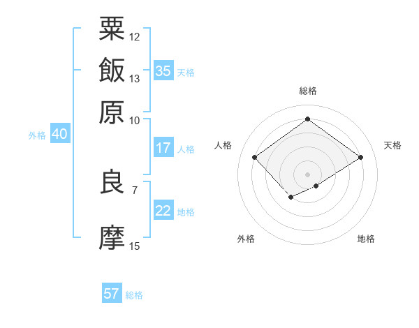 粟飯原 良摩さんを姓名の画数から五運を鑑定