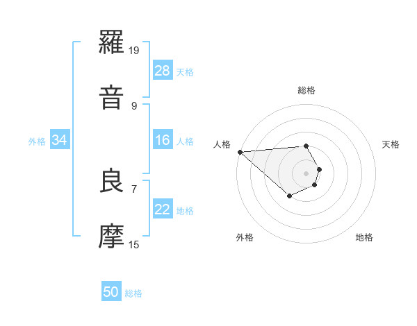 羅音 良摩さんを姓名の画数から五運を鑑定
