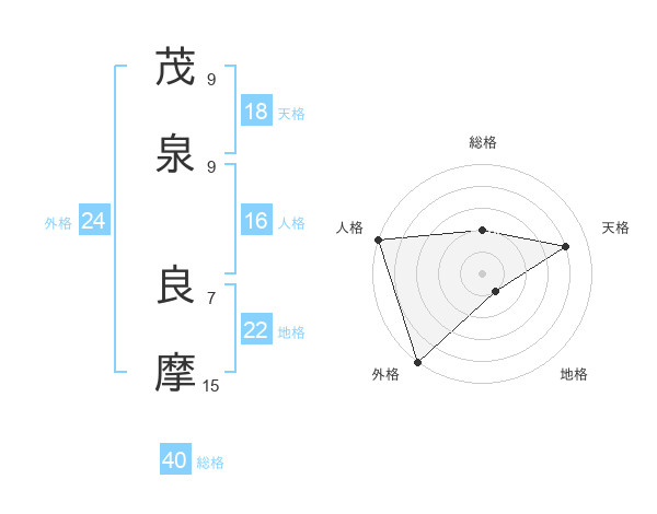 茂泉 良摩さんの天格は18画の4点!