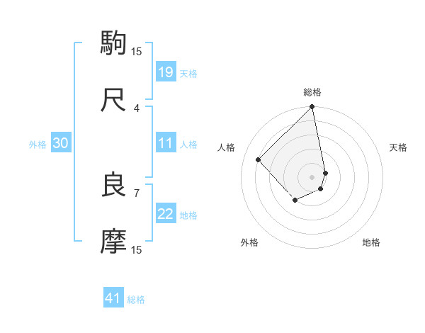駒尺 良摩さんを姓名の画数から五運を鑑定