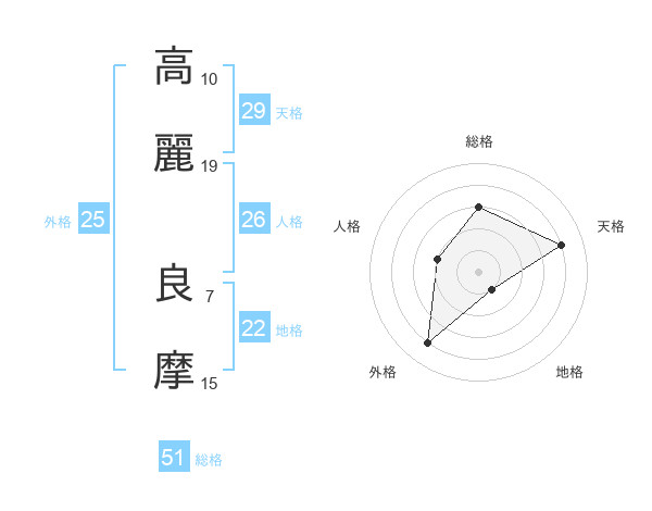 高麗 良摩さんの総格は51画の3点!