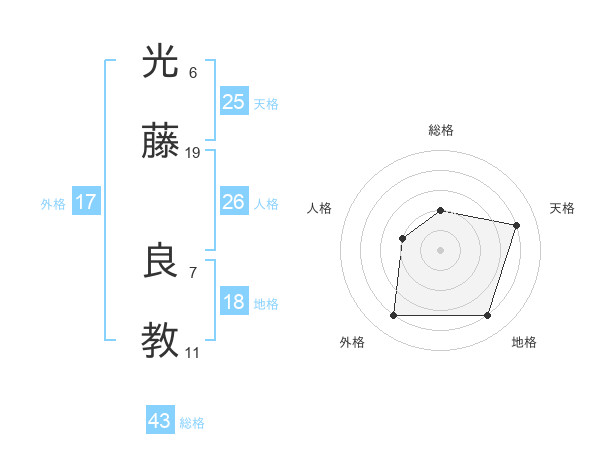 光藤 良教さんの総格は43画の2点!