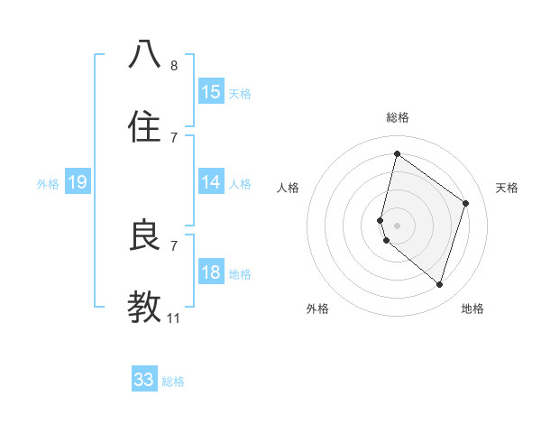 八住 良教さんの総格は33画の4点!