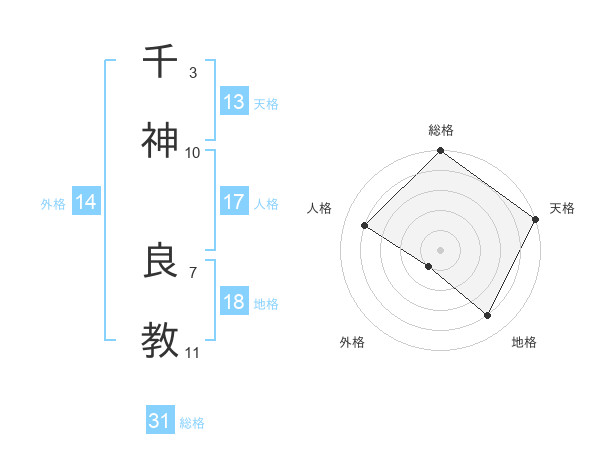 千神 良教さんの総格は31画の5点!
