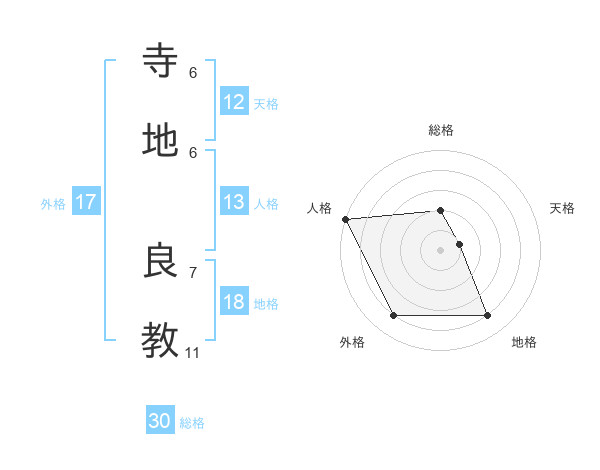 寺地 良教さんの総格は30画の2点!