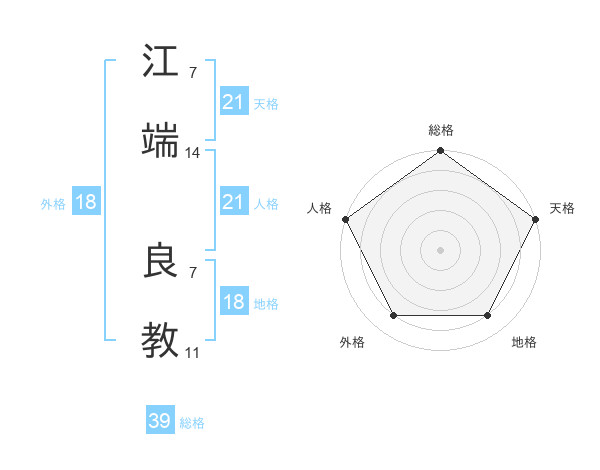 江端 良教さんの天格は21画の5点!