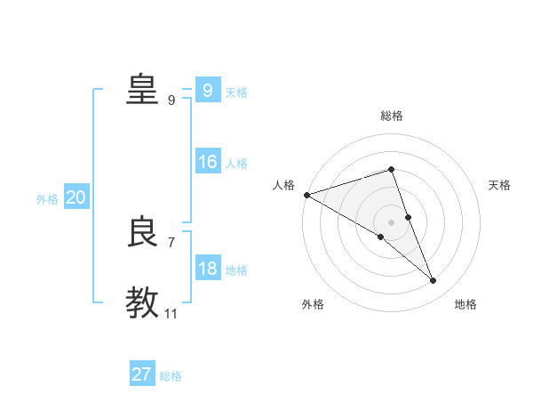 皇 良教さんの総格は27画の3点!