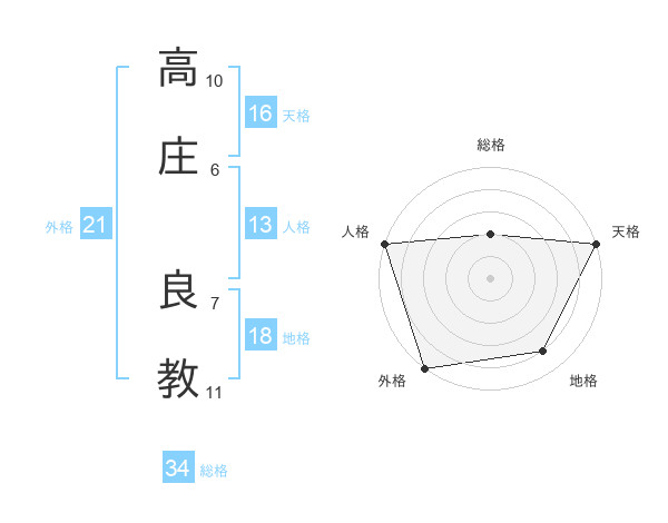 高庄 良教さんの外格は21画の5点!