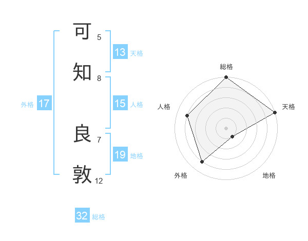 可知 良敦さんの天格は13画の5点!