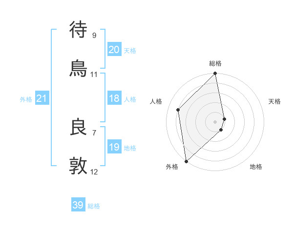 待鳥 良敦さんの総格は39画の5点!