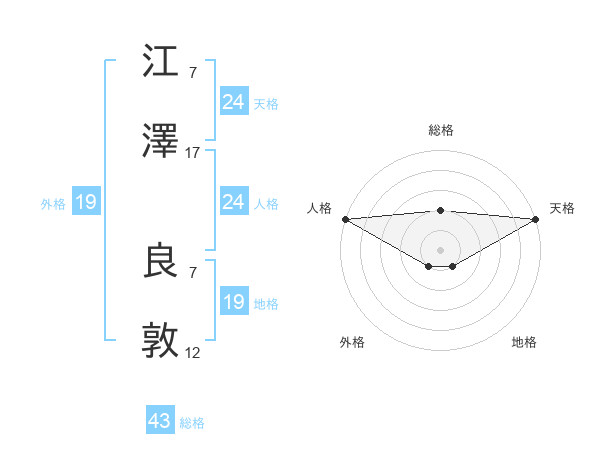 江澤 良敦さんを姓名の画数から五運を鑑定