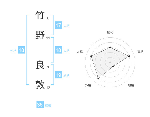 竹野 良敦さんを姓名の画数から五運を鑑定