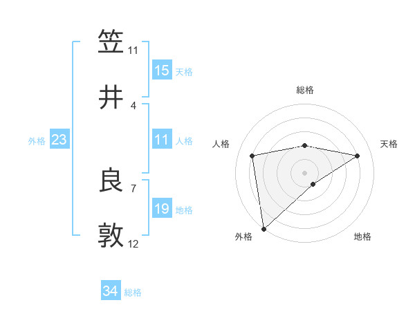 笠井 良敦さんを姓名の画数から五運を鑑定