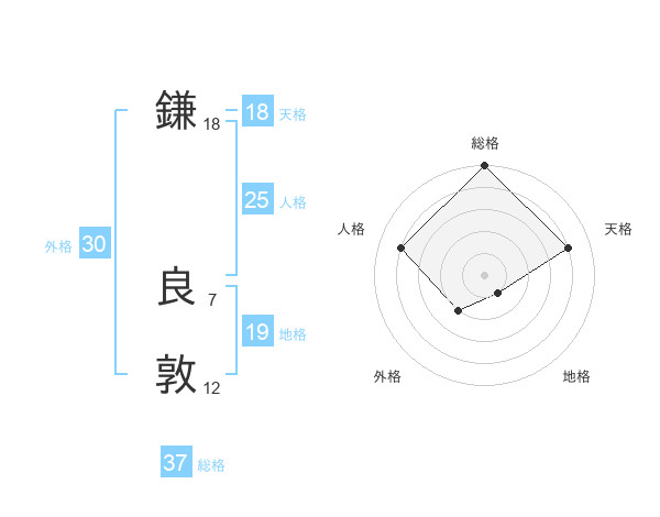鎌 良敦さんの総格は37画の5点!