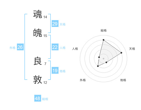 魂魄 良敦さんの地格は19画の1点!
