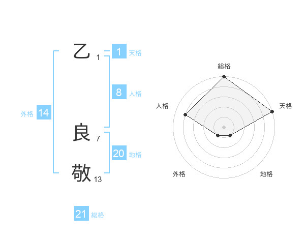 乙 良敬さんの総格は21画の5点!