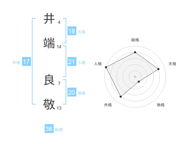 井端 良敬さんの総格は38画の4点!