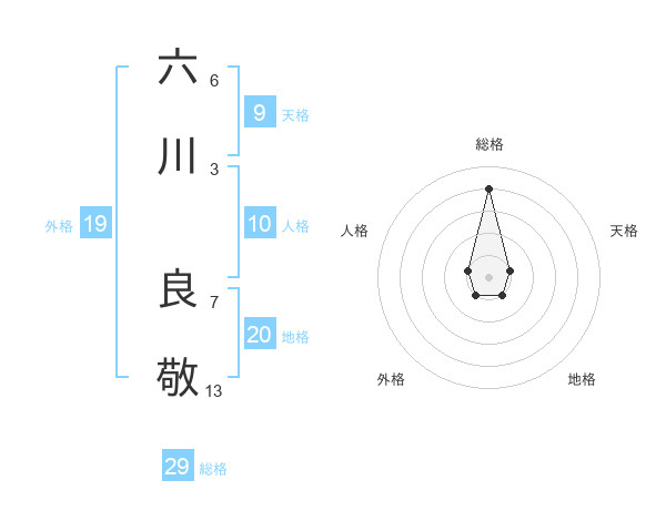 六川 良敬さんの総格は29画の4点!