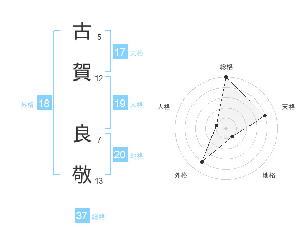 古賀 良敬さんの天格は17画の4点!
